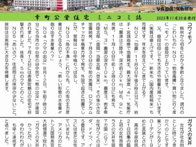 毎月20日に「市営幸町住宅」の皆さま向けに発行している『ペンのとびら』第111号を、11月20日に発行いたしました。 今回も多くの皆さまからご投稿をいただき、心より感謝申し上げます。 ※『ペンのとびら』は、宮城県「みやぎ …