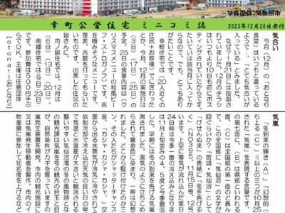 毎月20日に「市営幸町住宅」の皆さま向けに発行している『ペンのとびら』第112号年内最終号を12月20日に発行いたしました。 今回も多くの皆さまからご投稿をいただき、心より感謝申し上げます。 ※『ペンのとびら』は、宮城県 …
