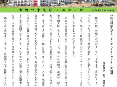 毎月月末に「市営鹿折南住宅」の皆さま向けにお届けしている 『ペンのとびら』ですが、2月末に第107号 を発行いたしました!📖 今回も、たくさんの投稿をお寄せいただき、本当にありがとうございます。 皆さまの …