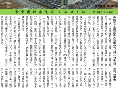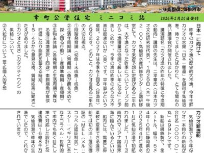 毎月20日に「市営幸町住宅」の皆さま向けに発行している『ペンのとびら』の第114号を2月20日に発行いたしました。 今回も多くの皆さまからご投稿をいただき、心より感謝申し上げます。 ※『ペンのとびら』は、宮城県「みやぎ地 …